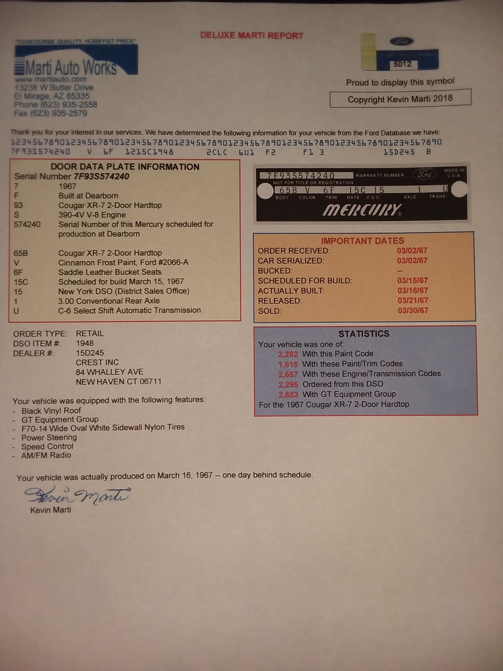 Well it was a combination that wasn’t offered by Lincoln Mercury. The GT has cruise and a C6 automatic transmission, the 6.5 has the four speed. The air filter housing on the 6.5 litre car is different than the GT Cougar too.