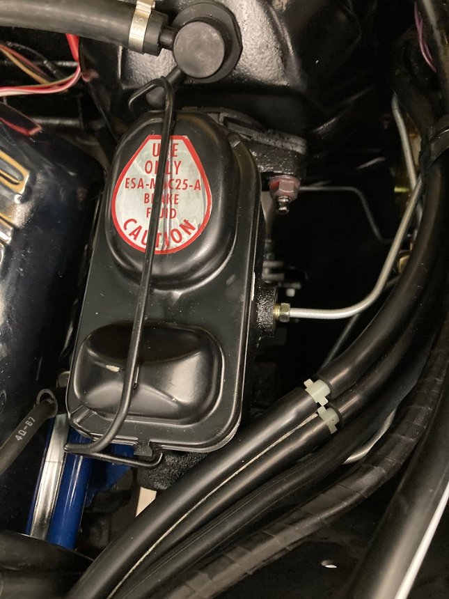 Overnight the brake distribution valve had a couple leaks. So I had to remove the master cylinder to be able to tighten the fittings some more. They quit weeping. So the master cylinder went back on.