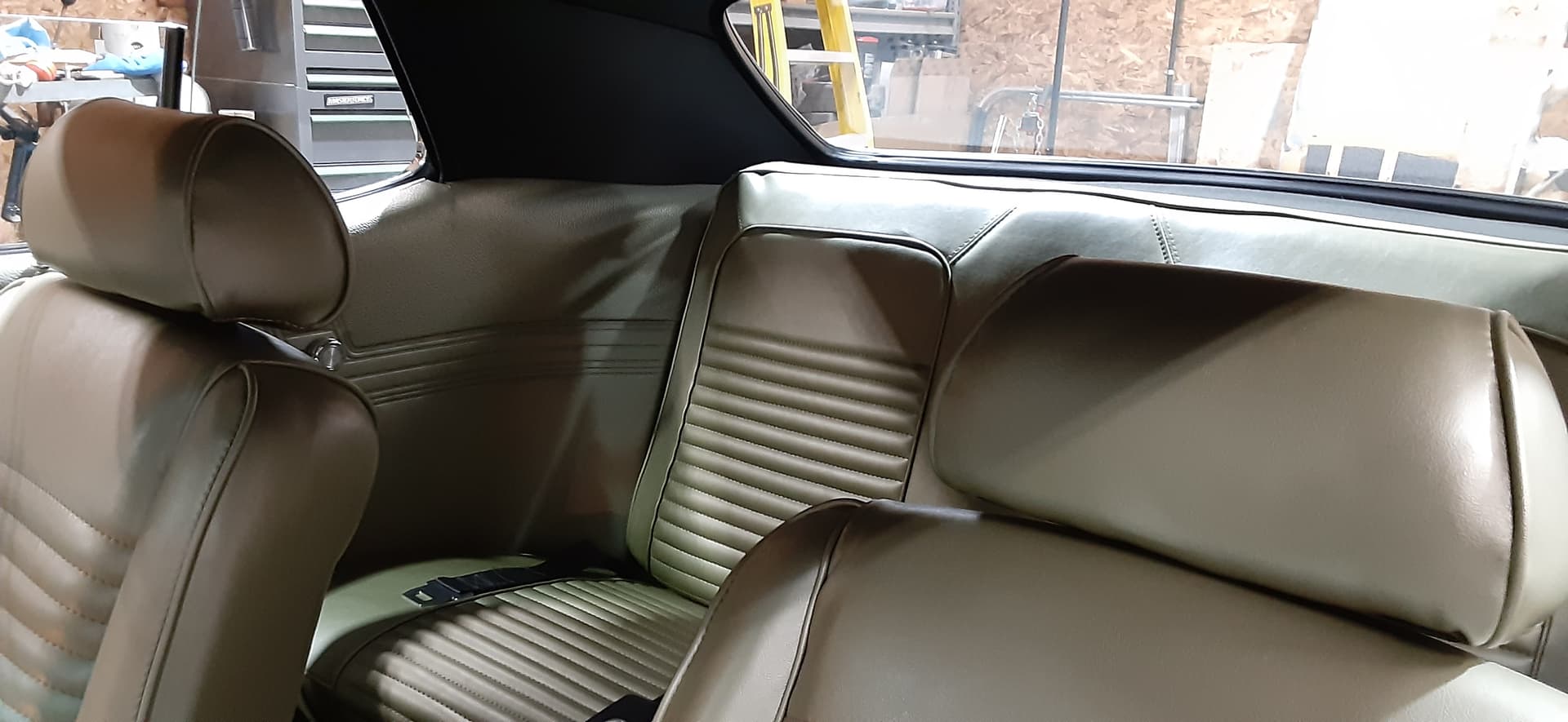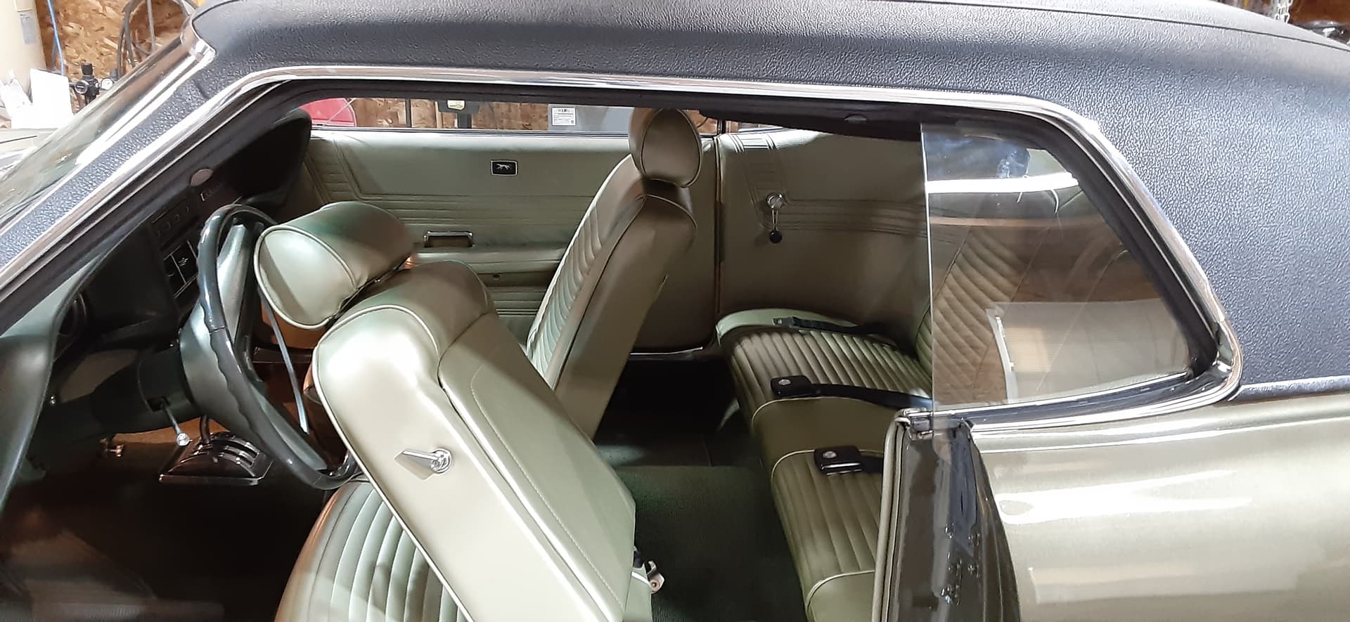 Not an XR7 so no emblem needed for deck lid. I have the 69 tail light bezel’s but I like the 70’s so I bought a set as my first Cougar had them. Yes it’s a sport side car 390/C6 trans numbers matching car and I have the Marti report. Hood scoop and keyed hood pins added and like. Had a little rust in door corners and the rear window lower corner passenger side some small dings on both side’s. Interior all redone stock.A.C. But not working, Drum brakes all 4, New vinyl top, New springs front and rear, ball joints upper and lower,sway bar bushings ect. Floors and sub frame and trunk solid and original so no not a rust bucket!!! Ps. Sport side rockers and tail light bezel had pitting so sand blast and paint. Thanks hope this helps KW.