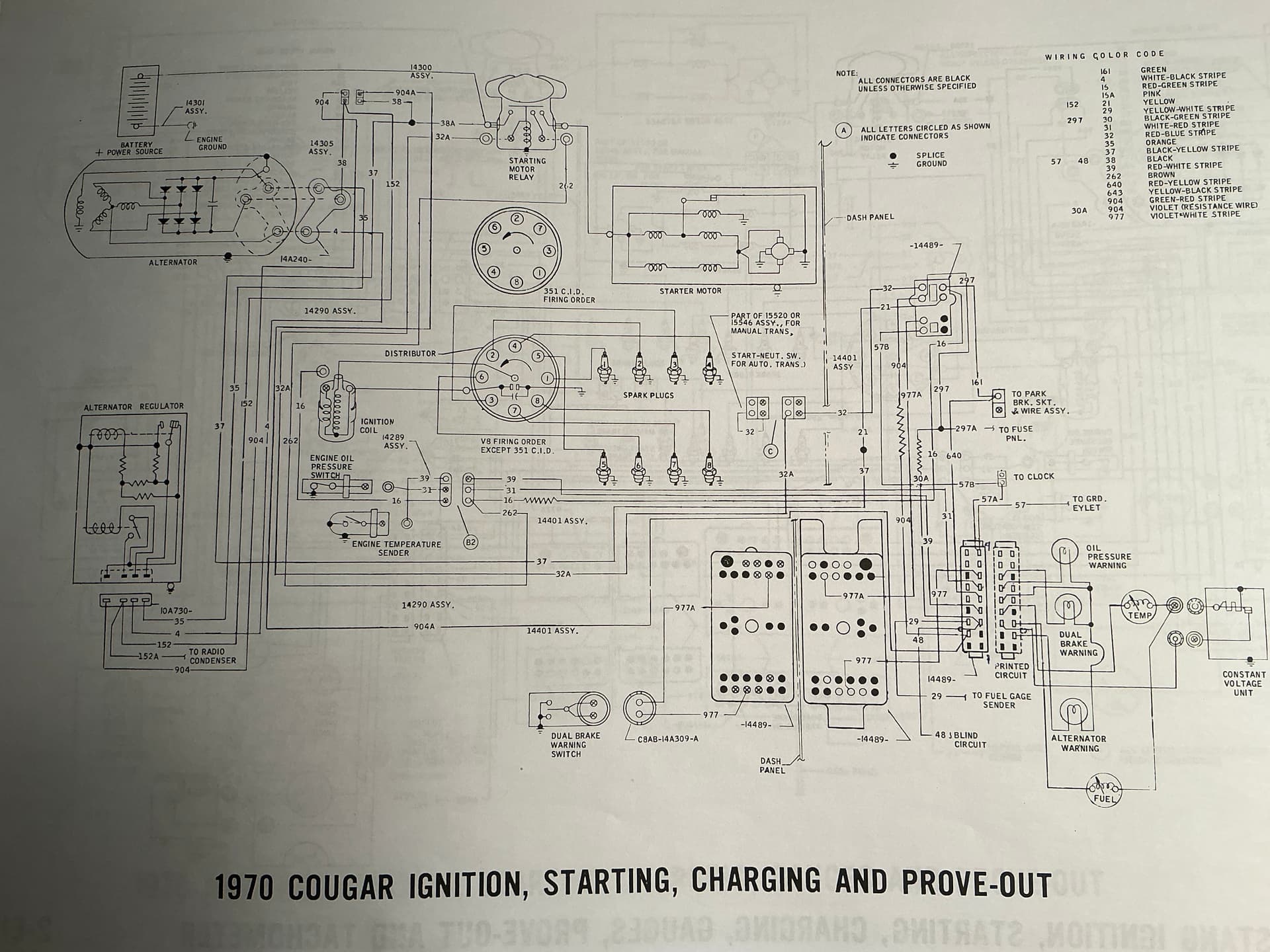 The pinout of that printed circuit connector is spread out among several pages of the 1970 Mustang and Cougar Wiring and Vacuum Diagrams. I just bought this copy and it’s SO much nicer than the smaller copies of copies that I had used previously: