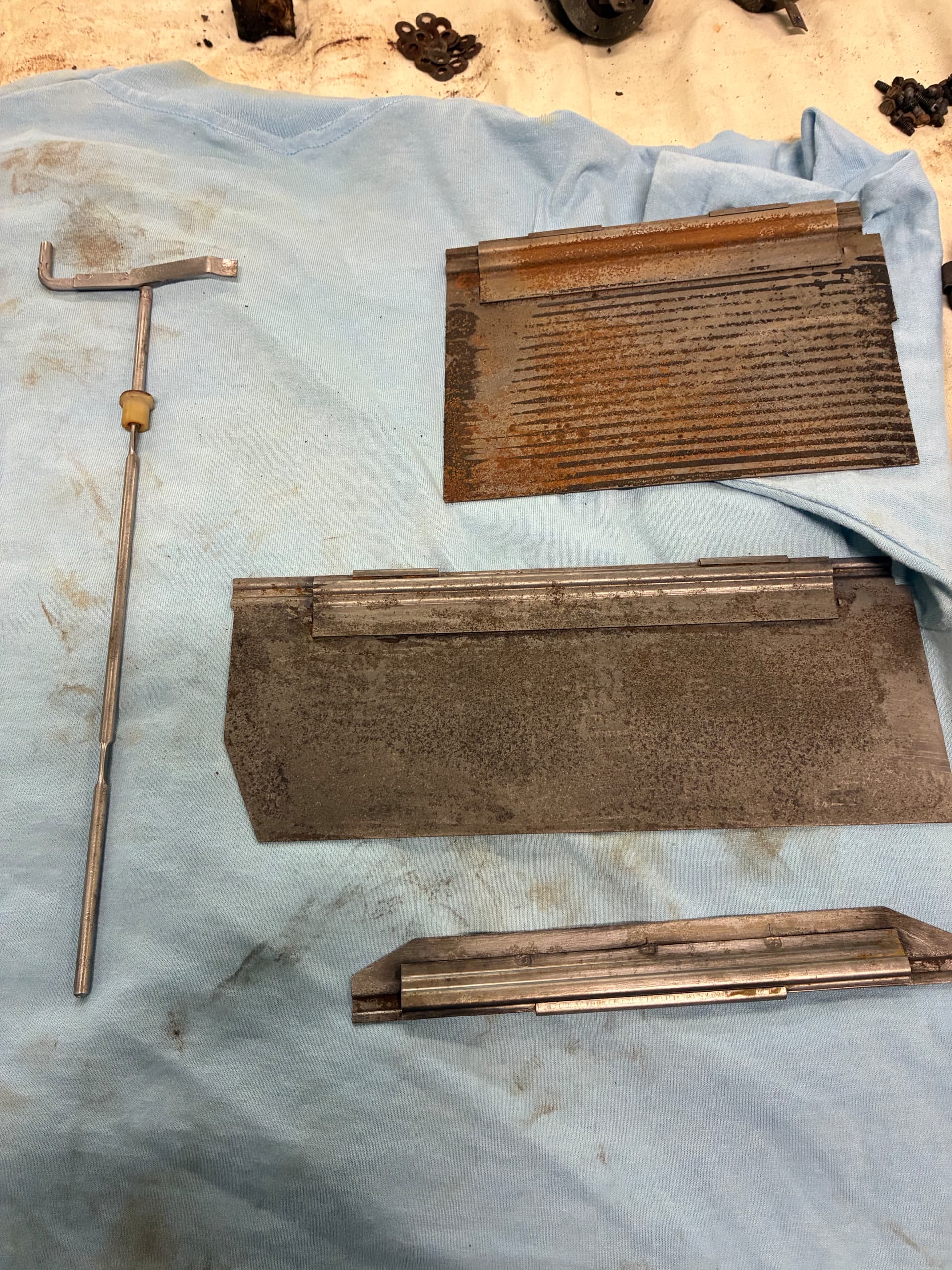 Next steps are cleaning everything up. I don’t care how rust free your car is, I’ll guarantee if you have an untouched heater box it’s going to be rusty. For the various shafts I used the wire wheel on my bench grinder. It works pretty well but it does require some care and a lot of patience. The larger parts like the doors went into the Evapo-Rust. That works very well.