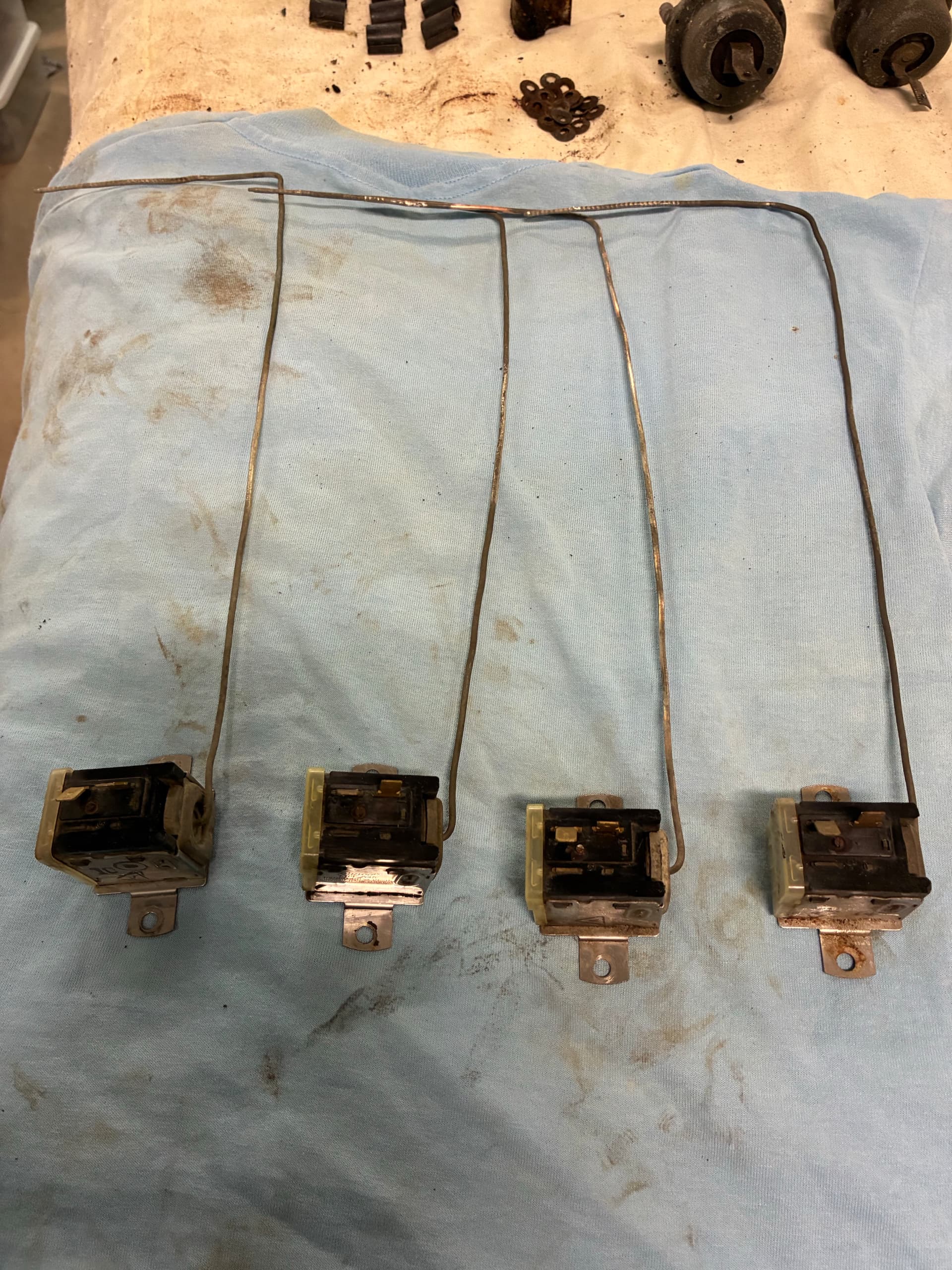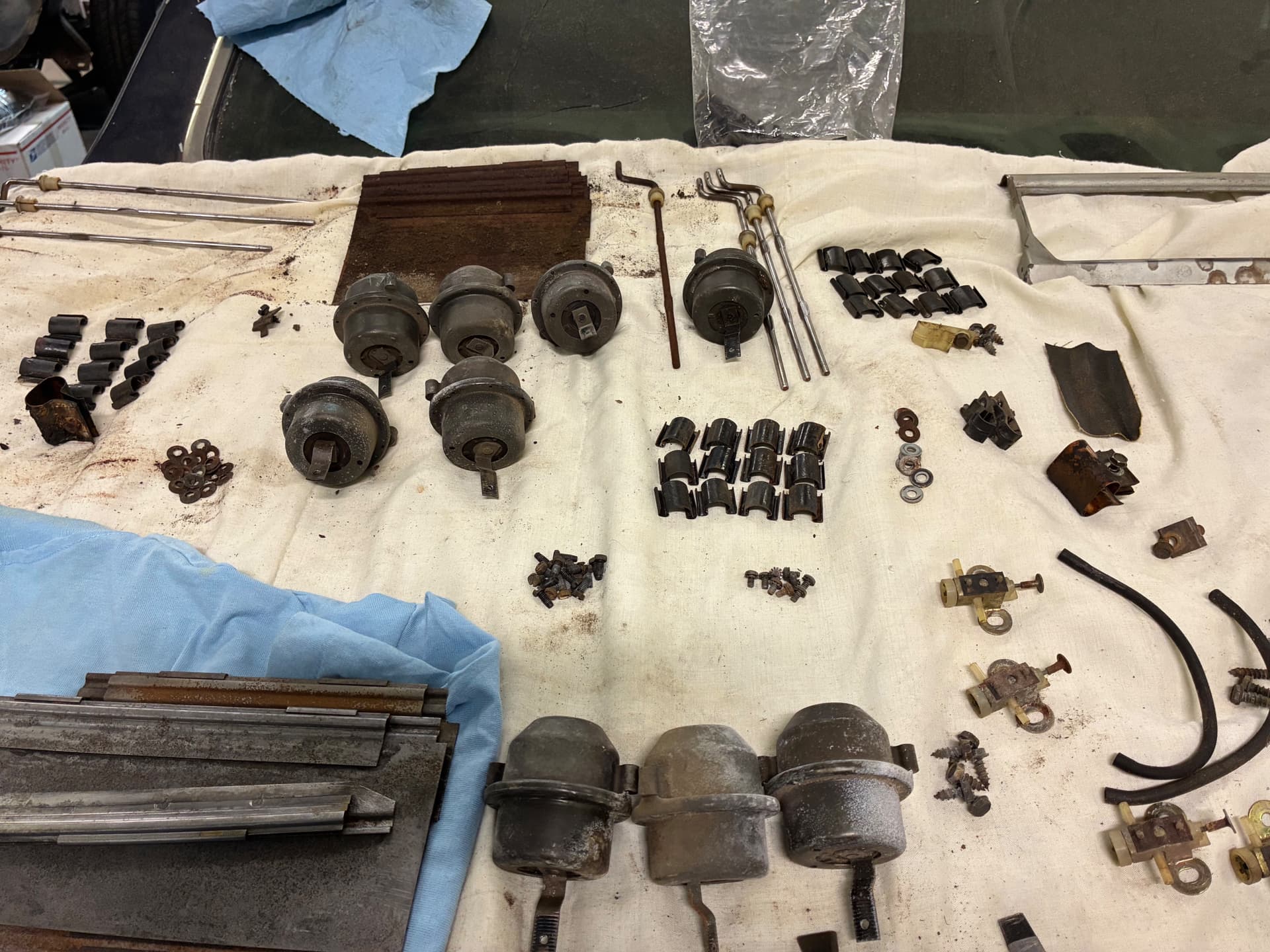 Here’s the remaining pile of parts I’ve yet to deal with. I’m undecided whether or not I’ll paint the vacuum switches. They will require hand sanding and I’ll have to get some appropriate brown paint.