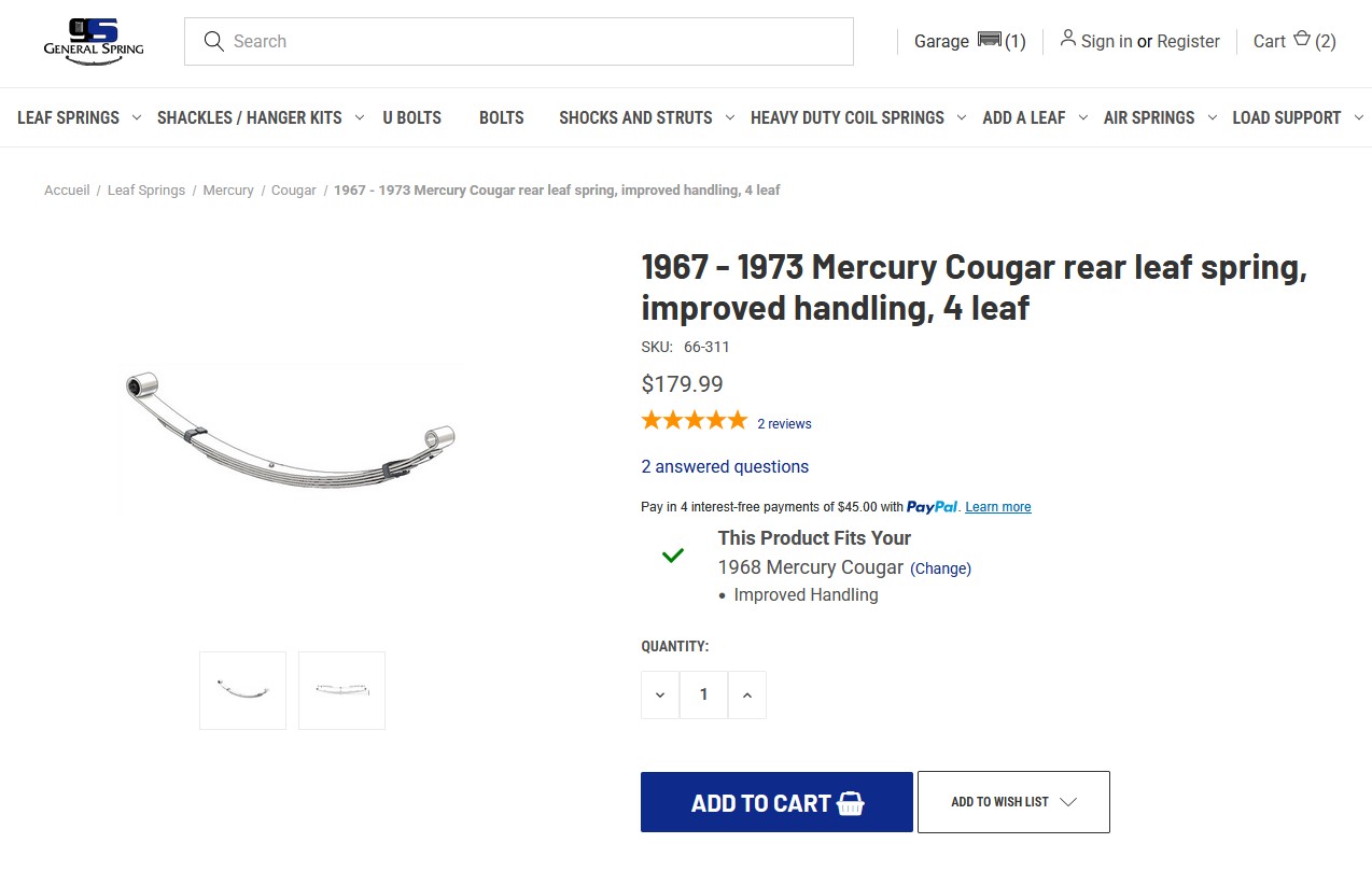 I’ve been looking for a new set of leaf springs on my sagging 68 cougar GT,
