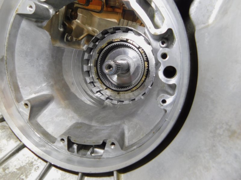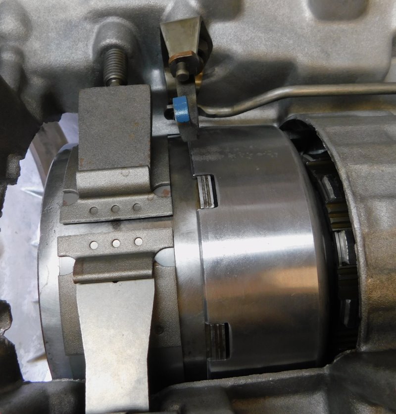 A big moment came when I was able to install the other two clutch / planetary assemblies. Everything slid together as it should! For the time being I assembled the intermediate band and tightened the adjustment enough to center the assembly in the transmission and hold it in to the rear planetary / clutch assembly.