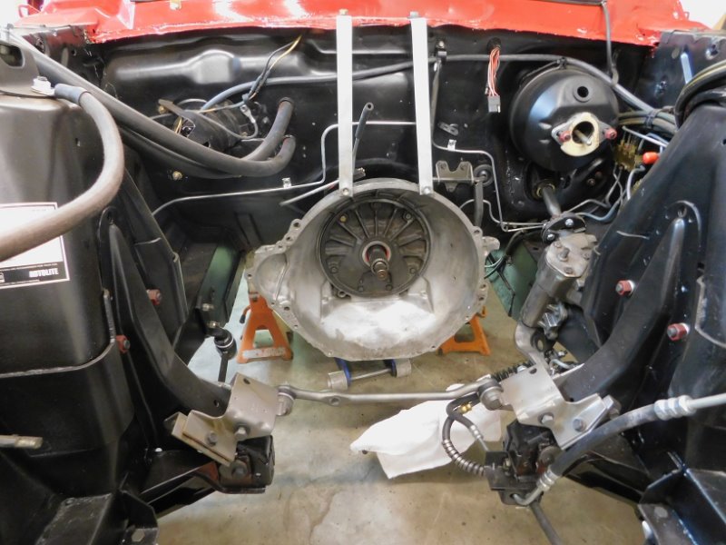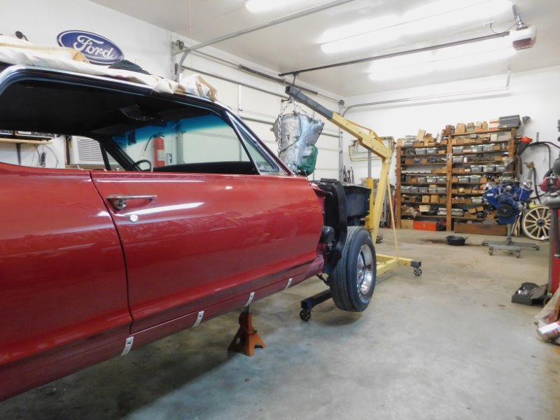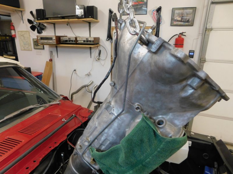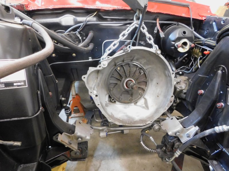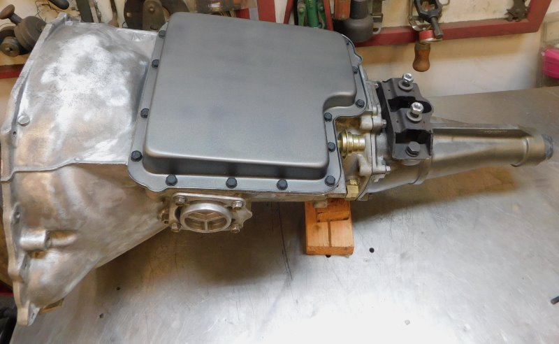 Two big milestones today - the transmission is done, and the car is sitting on the ground for the first time since May 2017. Weather permitting I am going to push the car outside, turn it around, and install the transmission for what I hope is the final time.