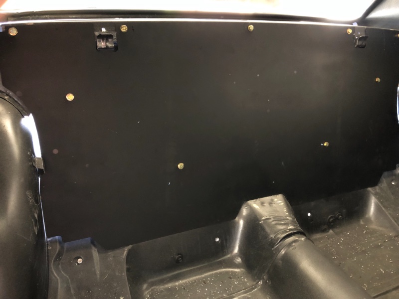 Not much progress lately but I did get the rear panel behind the seat installed. I used nut zerts instead of tec screws or rivets for easy removal. Still need to do something with the bottom section to prevent it from rattling then I can cover it with sound deadener
