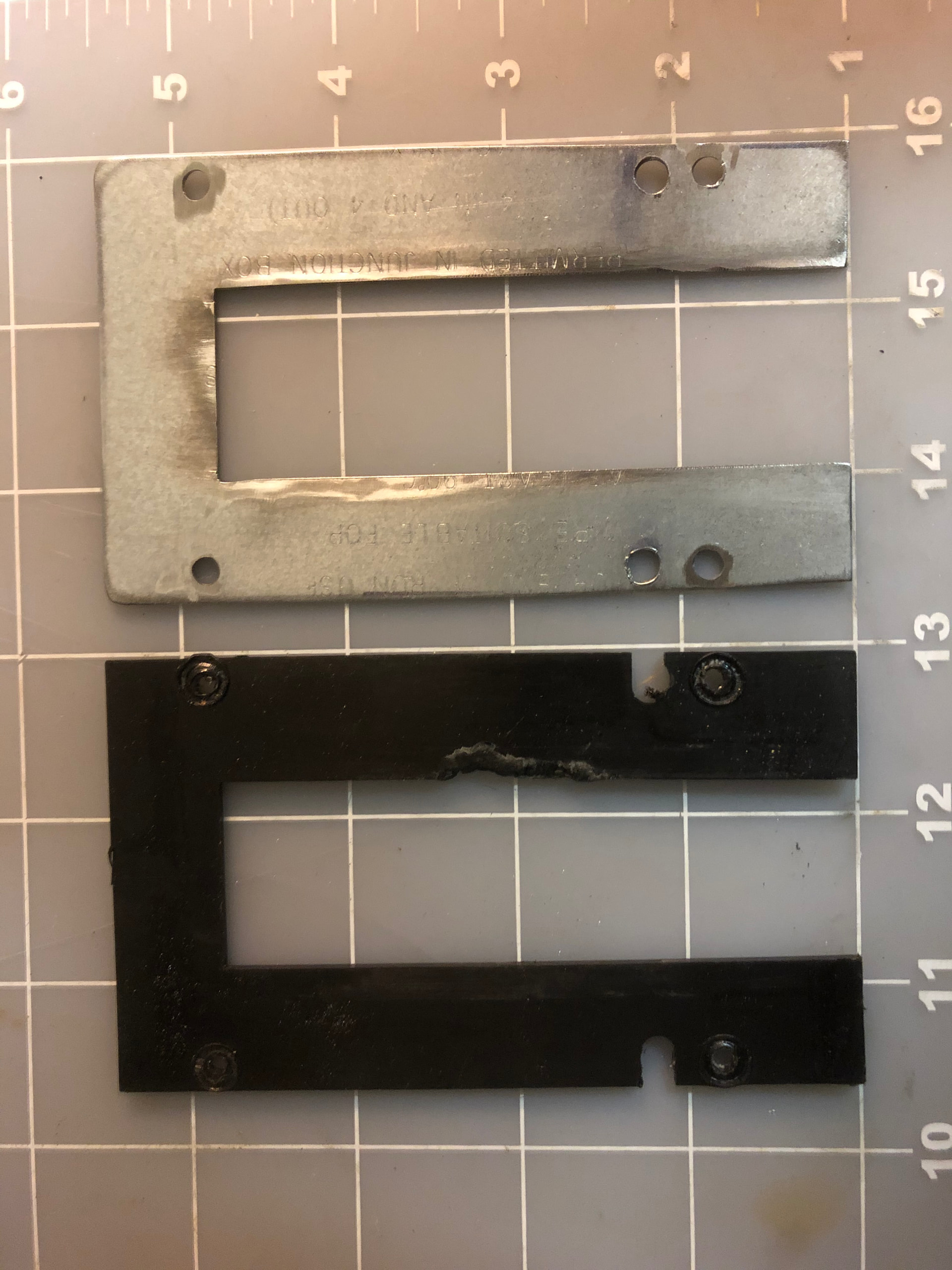 It looks like this? The plastic nubs hold it together…I think. I made one out of a j-box cover.