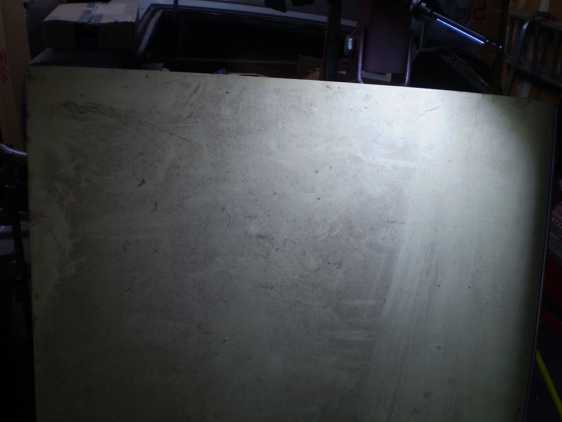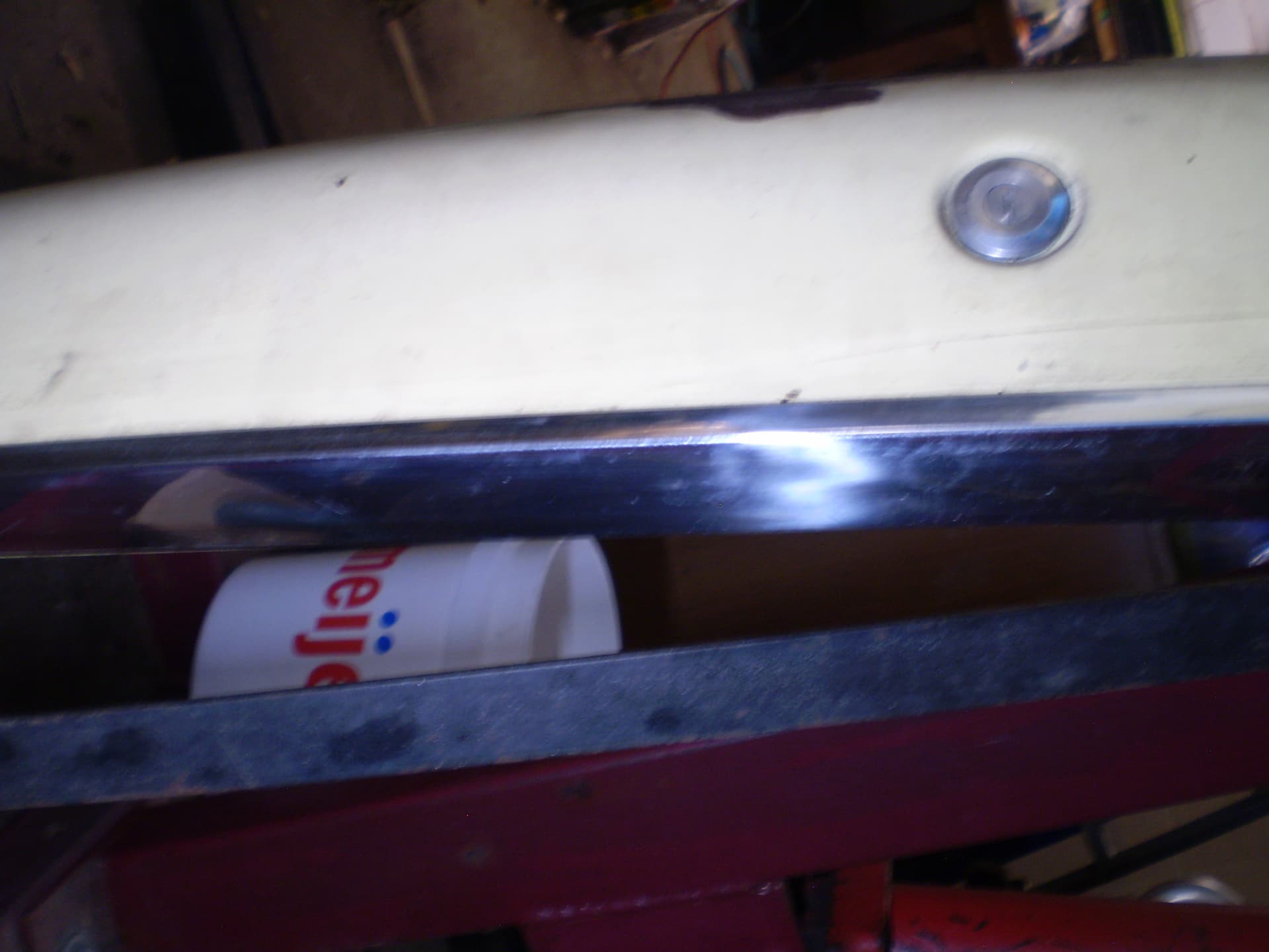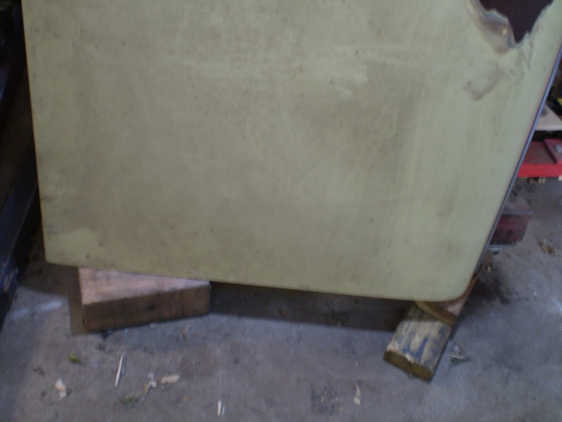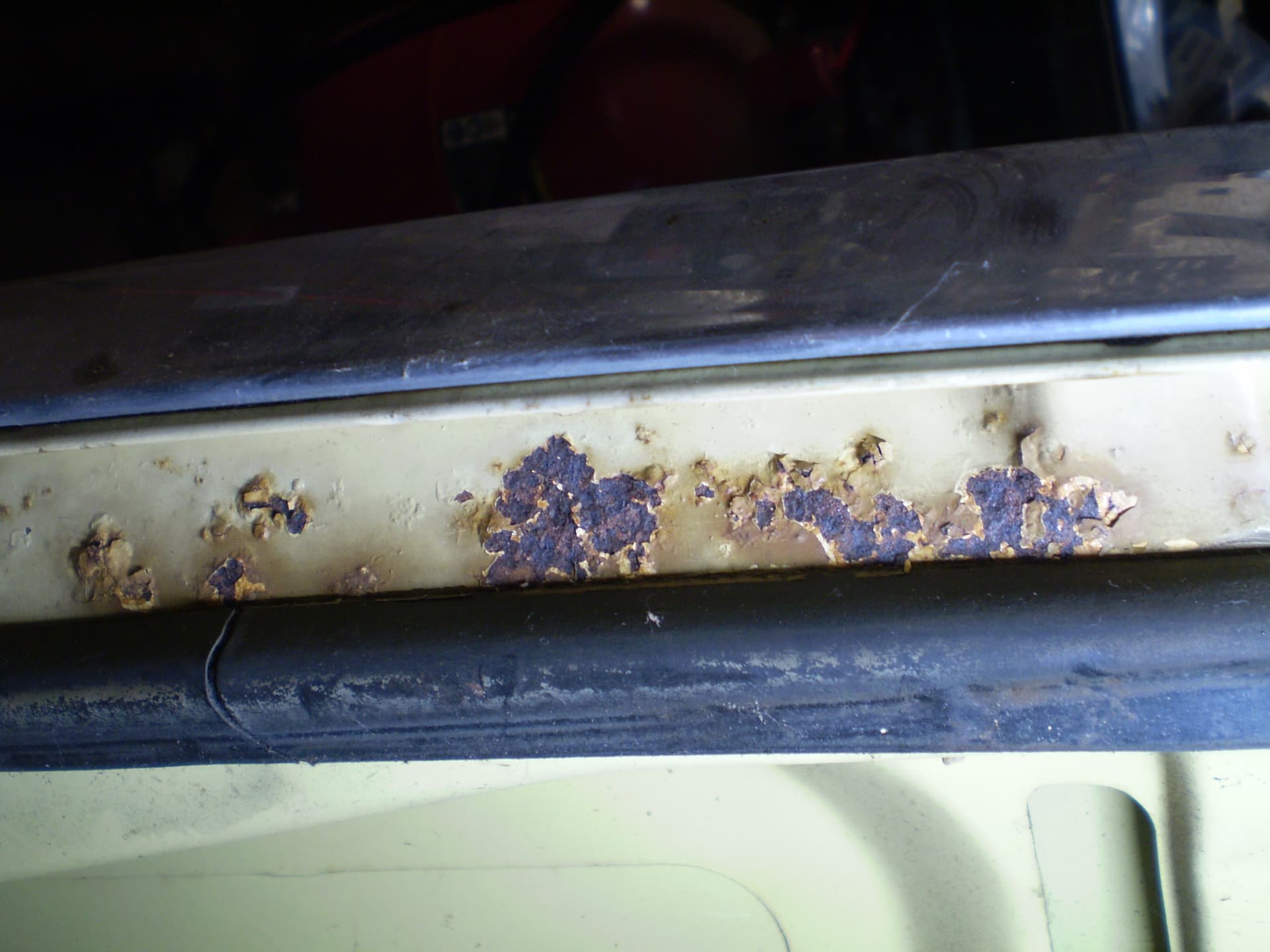 Its a F Dearborn car. The shock towers have big ugly holes from a cutting torch, someone thought it was a good idea in order to grease the upper arm pivot. The deck lid is in good condition, was professionally rustproofed at some point (see the yellow plugs). the inside surfaces were sprayed with black rustproofing, not undercoating. I hit a spot with the sander years ago I think there was a bubble in the paint I don’t remember for sure.