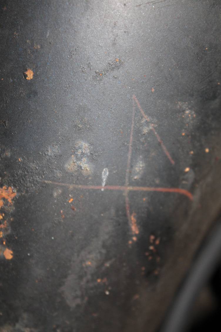 The more I look at this Cougar the more coll stuff I find. Like this red number 4 on the passenger side shock tower. I have no idea what the 4 means. Just notice the paint OK stamp on the hood from inspector number 613. You can’t make it out in the picture, but in the upper left corner is the FOMOCO logo.