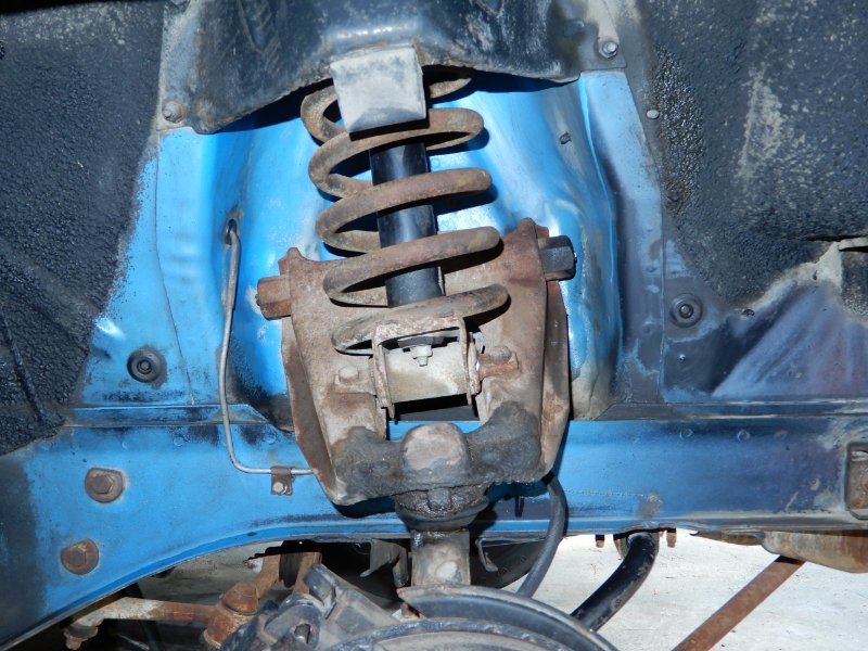 0F91G512239 while it is Competition Blue on the exterior the slop paint while blue is definitely darker and more grey as can be seen in this photo, where in front of the suspension is mostly slop and exterior color behind the suspension. The driver side, whoever was spraying the Comp Blue I guess did not feel like applying any.