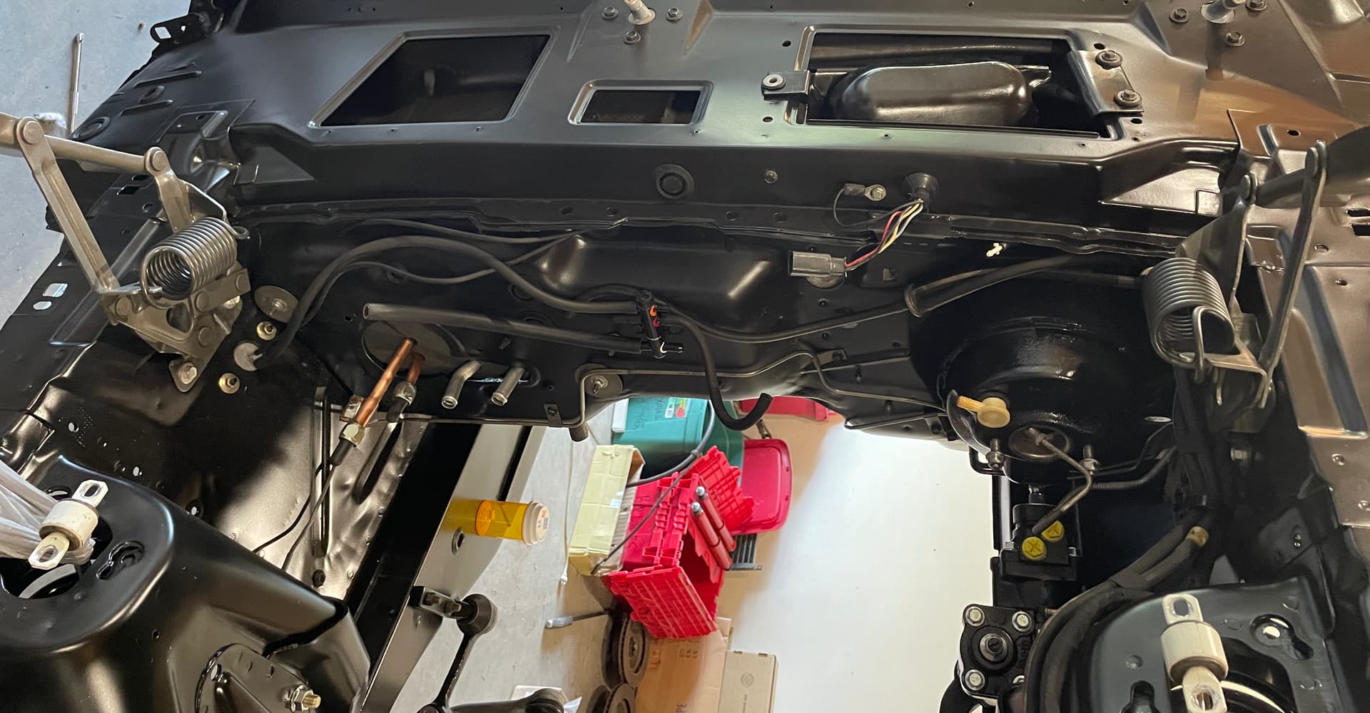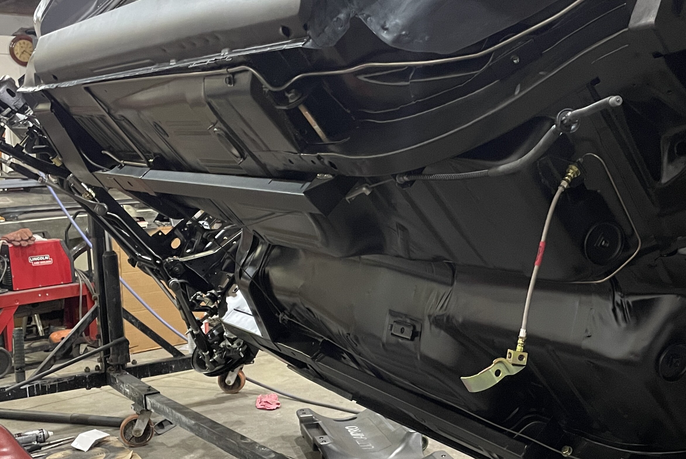 More small stuff…brake lines, fuel lines, parking brakes cables, pan plugs, interior sealed with two part flowable sealant at joints, and brushed seal sealer. On to harness taping, ac box rebuild, and rear axle clean up and rebuild