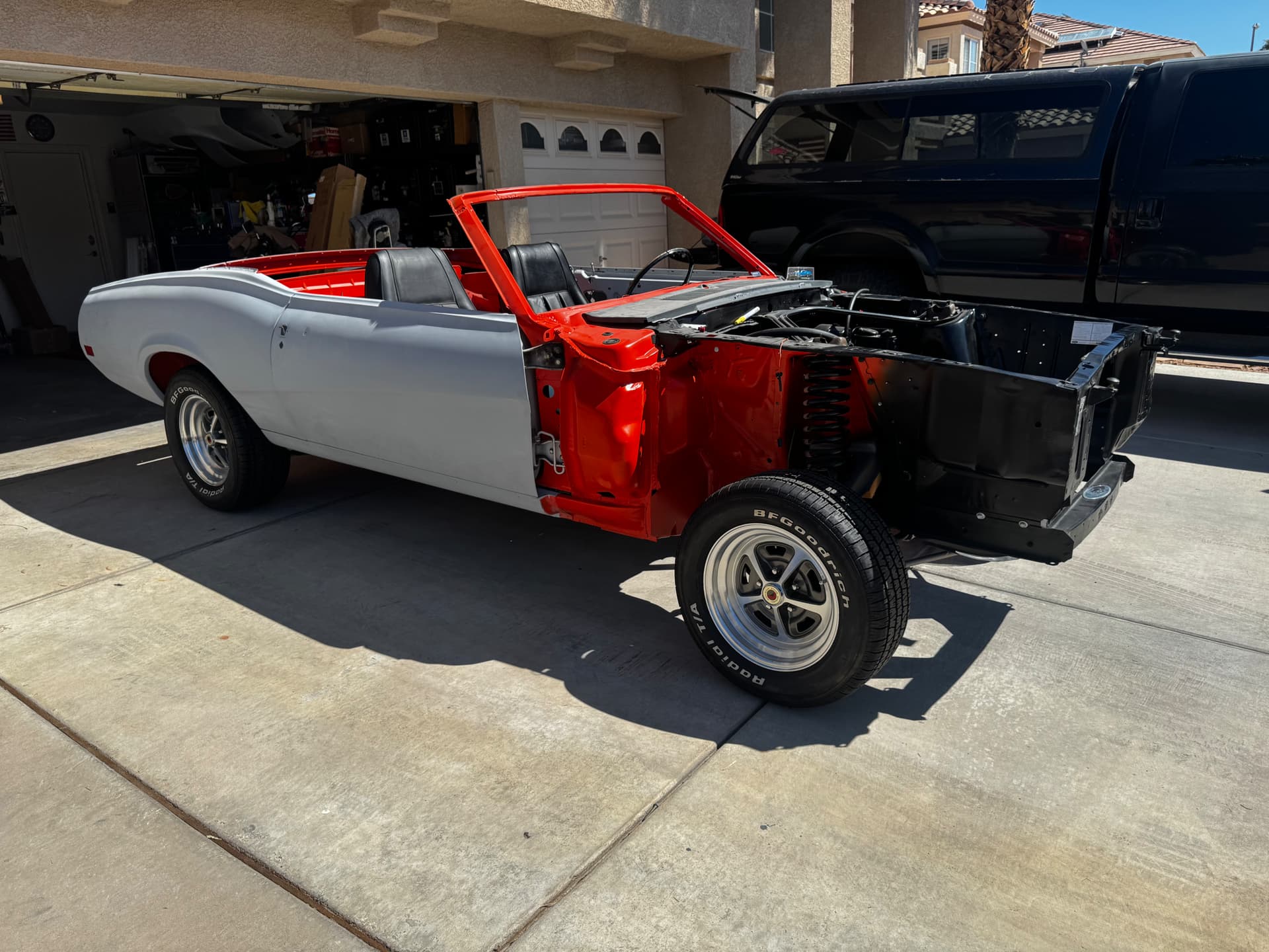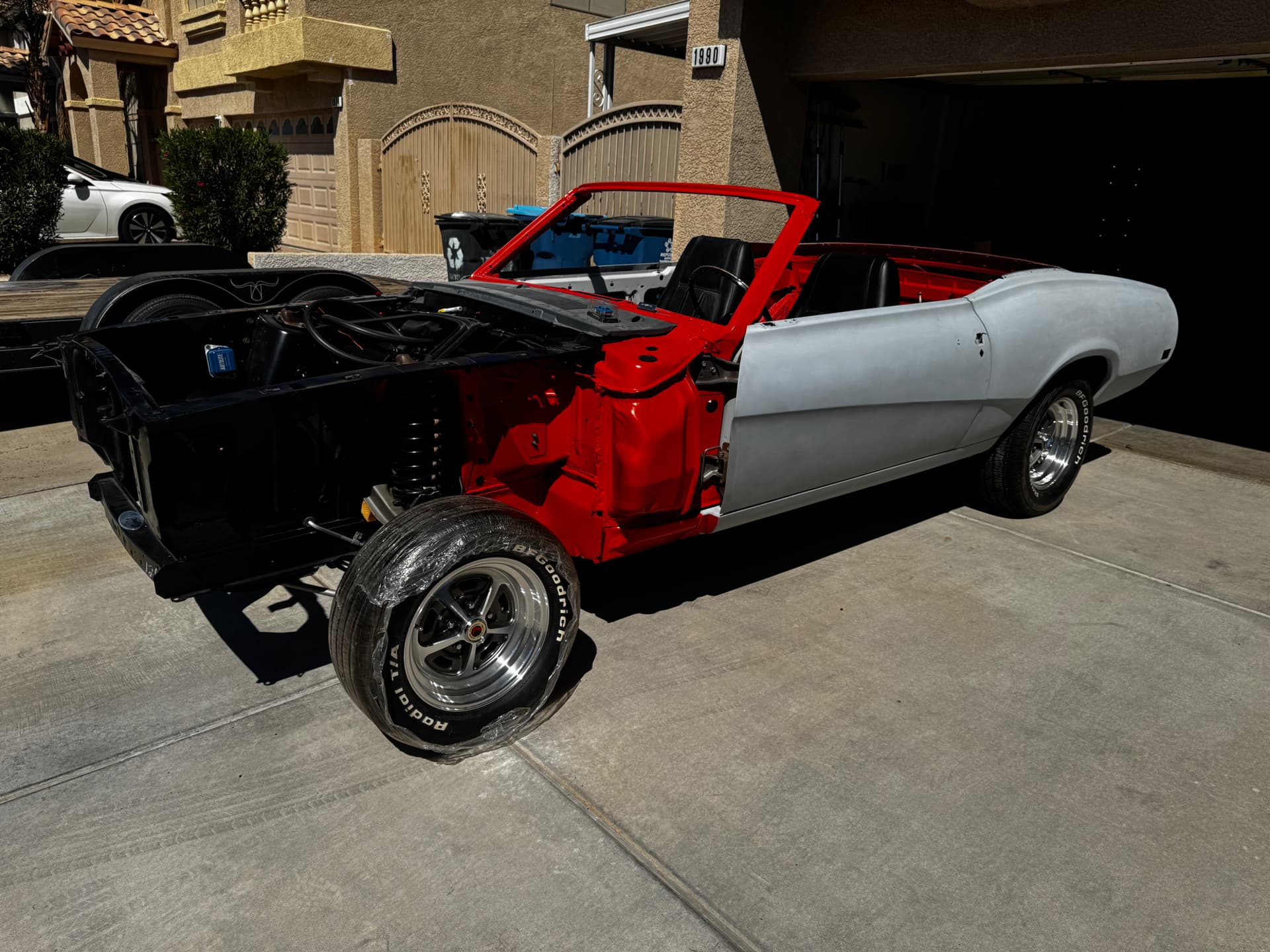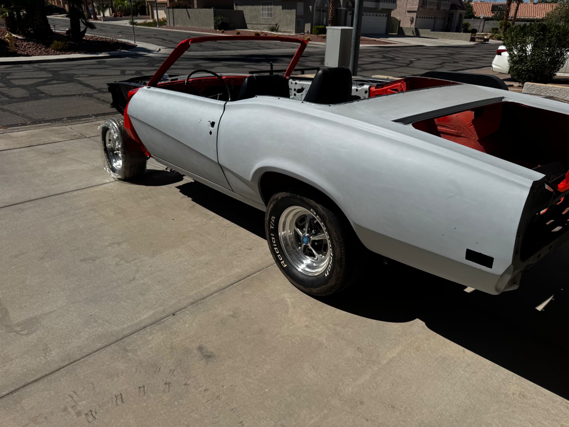 Well, there hasn’t been much progress in the last few months due to work being busy and other obligations. I obtained some 15x7 Legendary wheels and tires from a Pic a Part 69 cougar and have been toiling away on small pieces and parts. Trying to get it ready to go for paint soon by hanging doors and panels so it can travel.