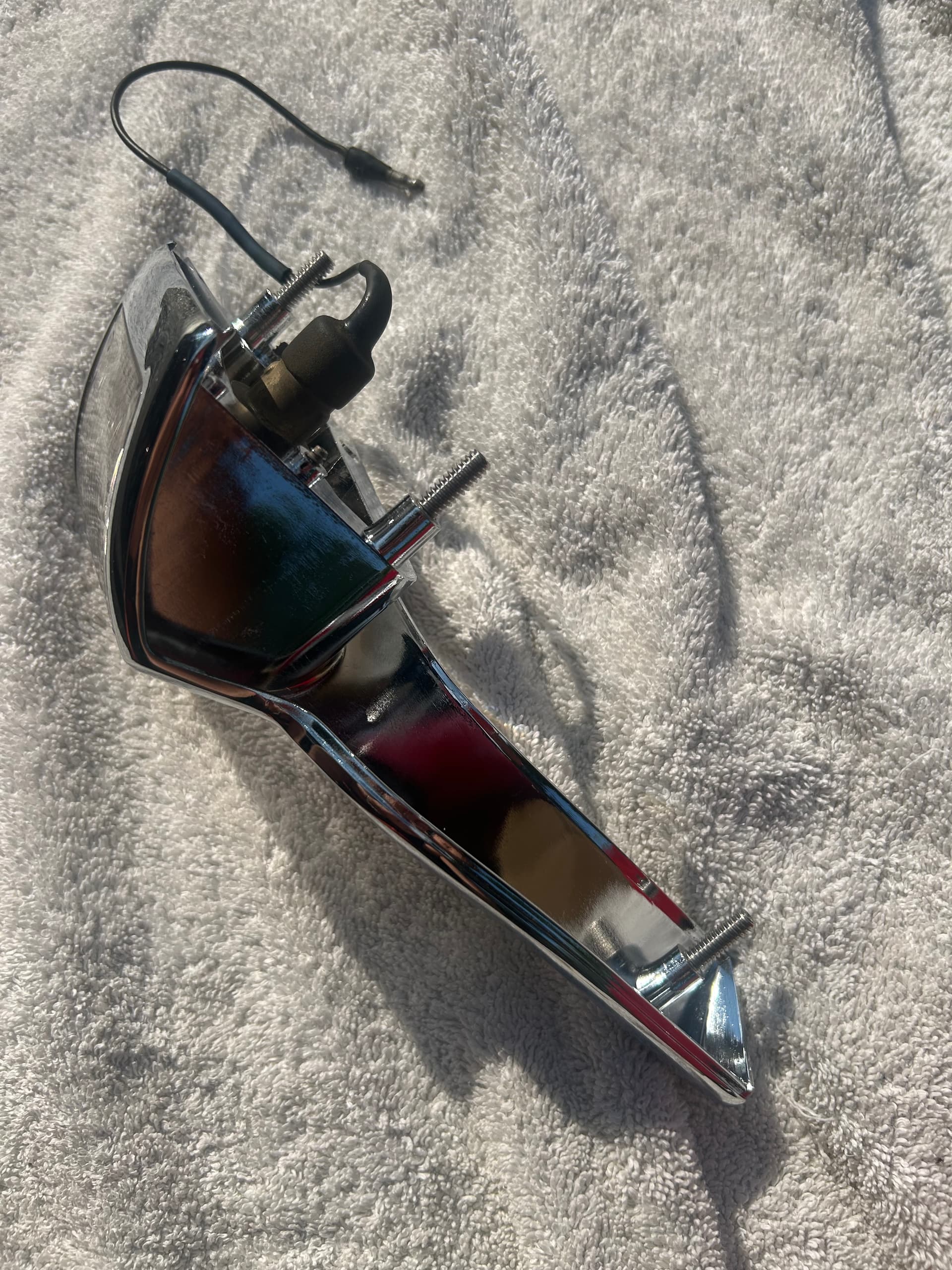 So today I dove in to replacing the back up light assemblies with the repro chrome pieces. As noted in Bill’s thread about product development, repro pieces are OK but many/most don’t fit that well. These chrome plated castings look good but fit is only OK.