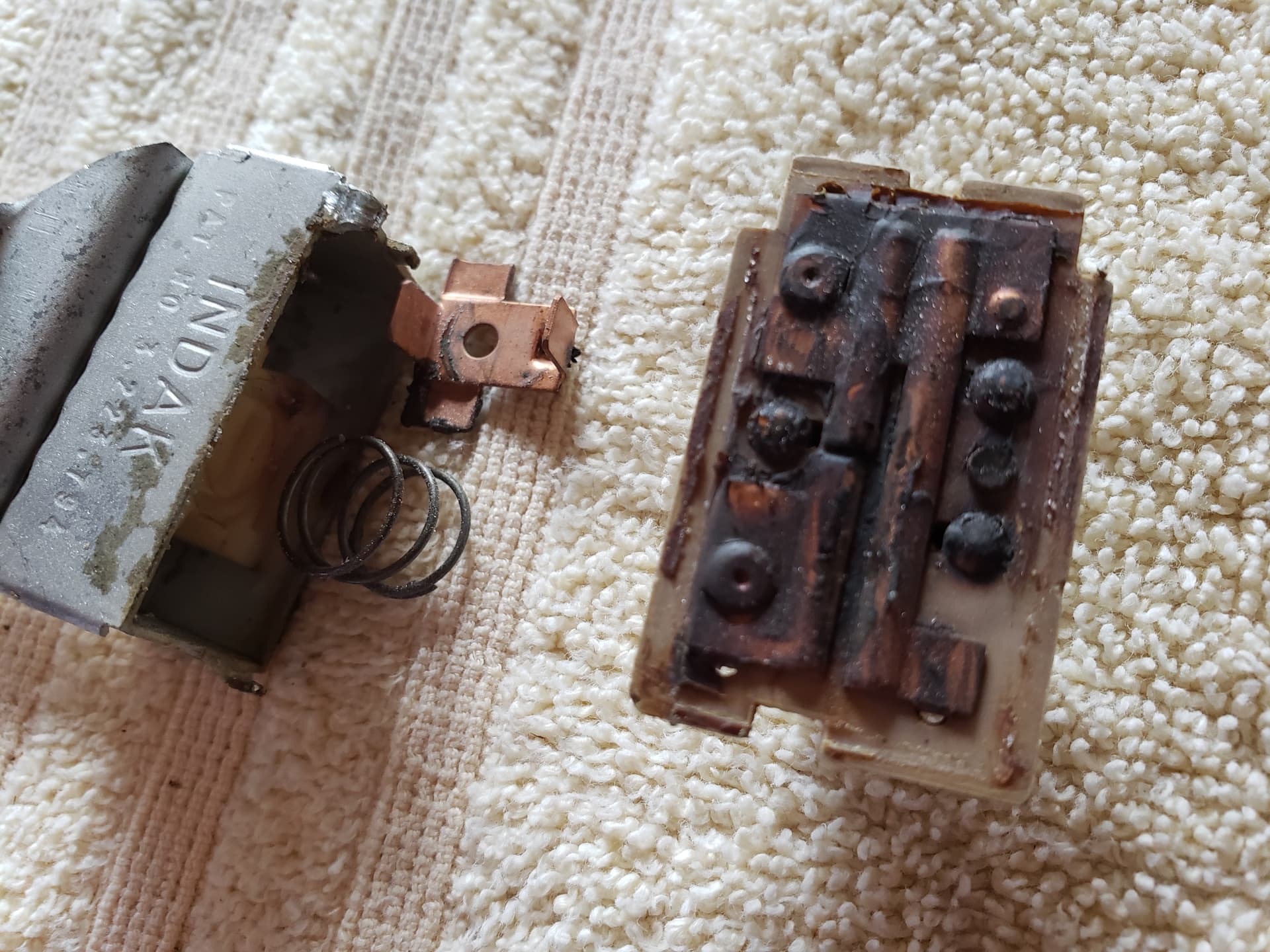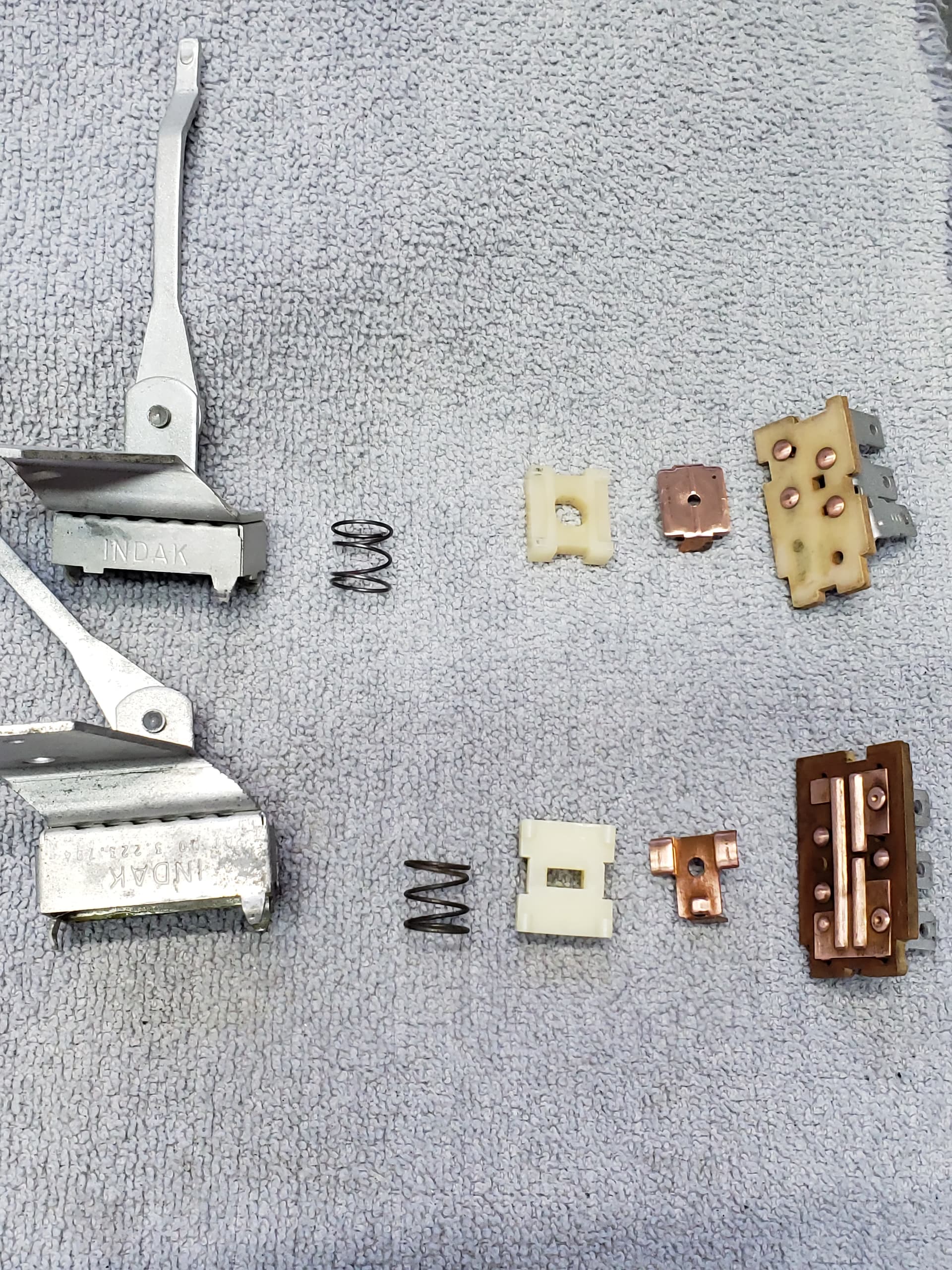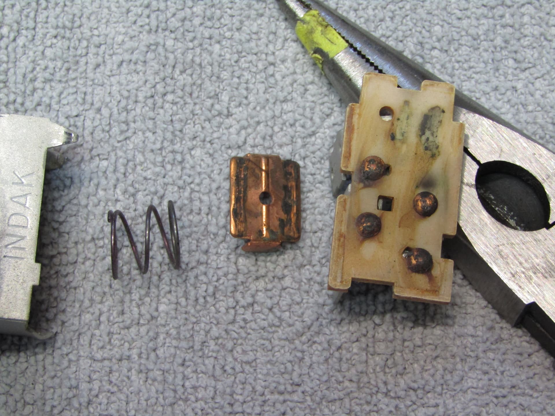 Clean all parts. I used spray brake cleaner. Then fine steel wool on the copper/brass parts. Lubed them up ( I used Dielectric grease, but others can work) & reassembled. Just saved over $50, Other dash switches can be done the same way. Drop of oil on the arm pivot pin too.