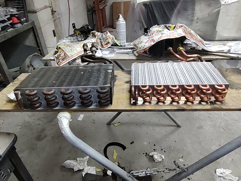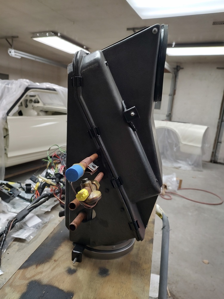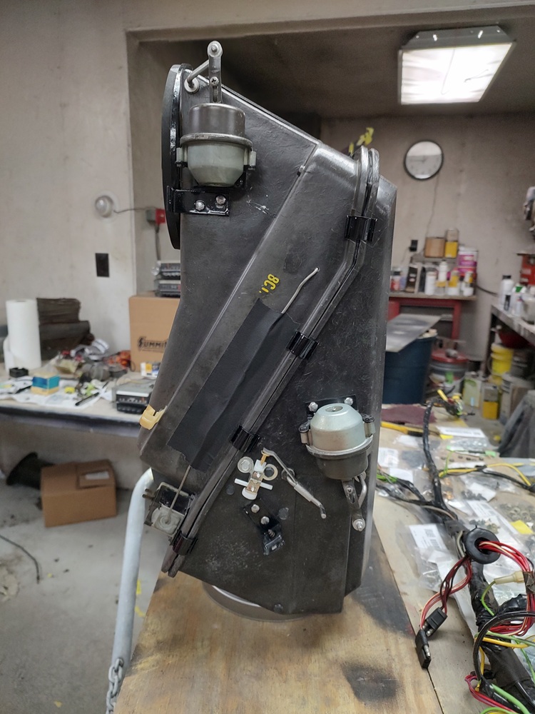 The AC heater box was a disaster. The fiberglass was quite disintegrated, so I bought a nice used case.