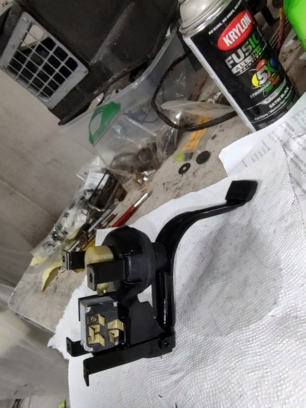 The switch was masked off, so that I could sandblast it and paint the assembly semi-gloss black (the can in the picture is not the one I used) before re-assembly.