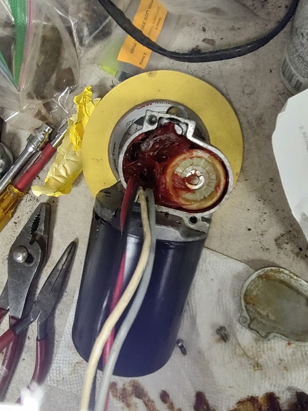 Next up was the wiper motor. The original one was pretty rusty. I bought a nice used one, but as no surprise the gear had some broken teeth. This comes from not putting a wrench on the pivot arm when taking it apart. That is probably why it ended up on ebay. I pulled the gear from my original one to fix it.
