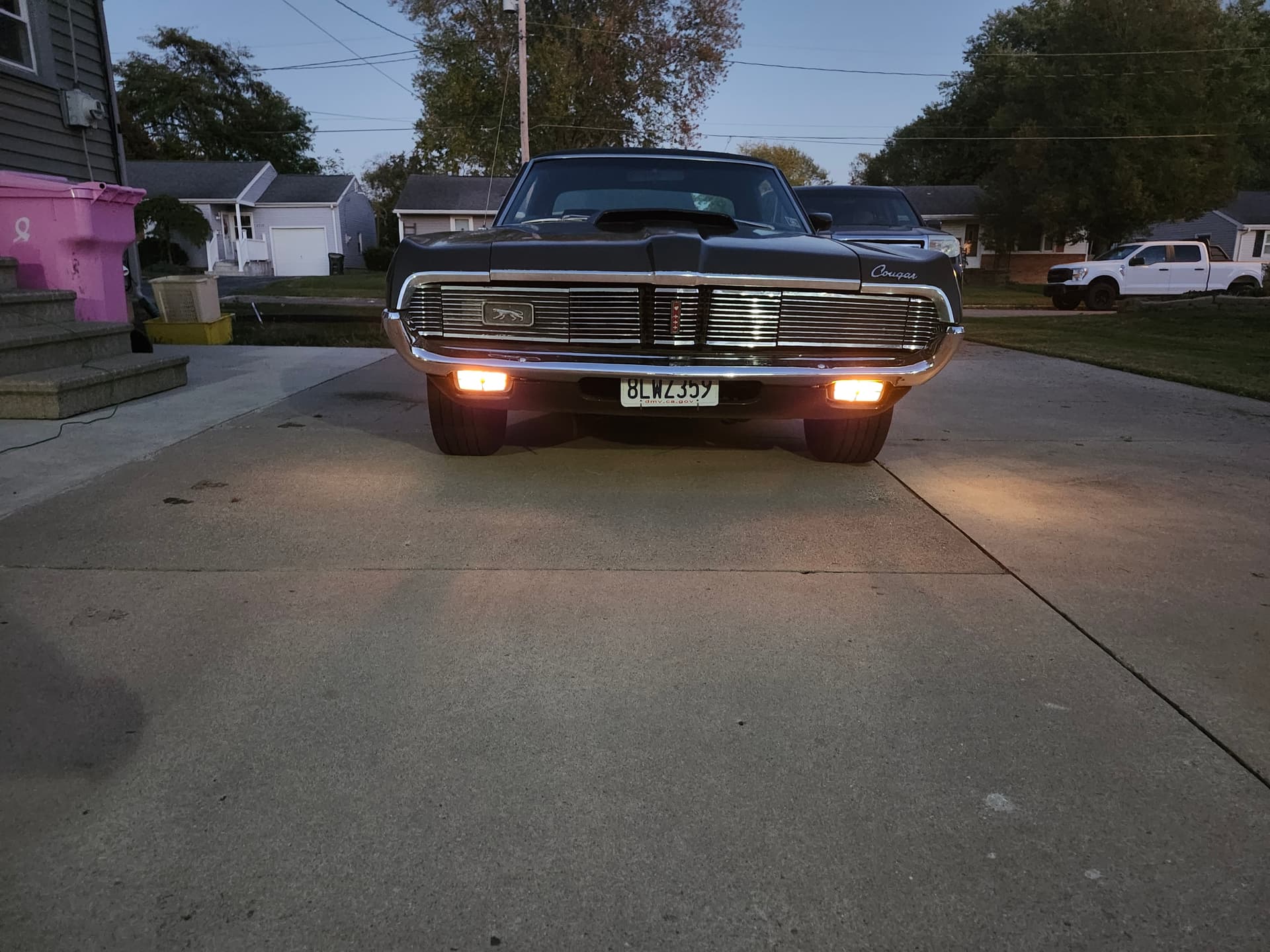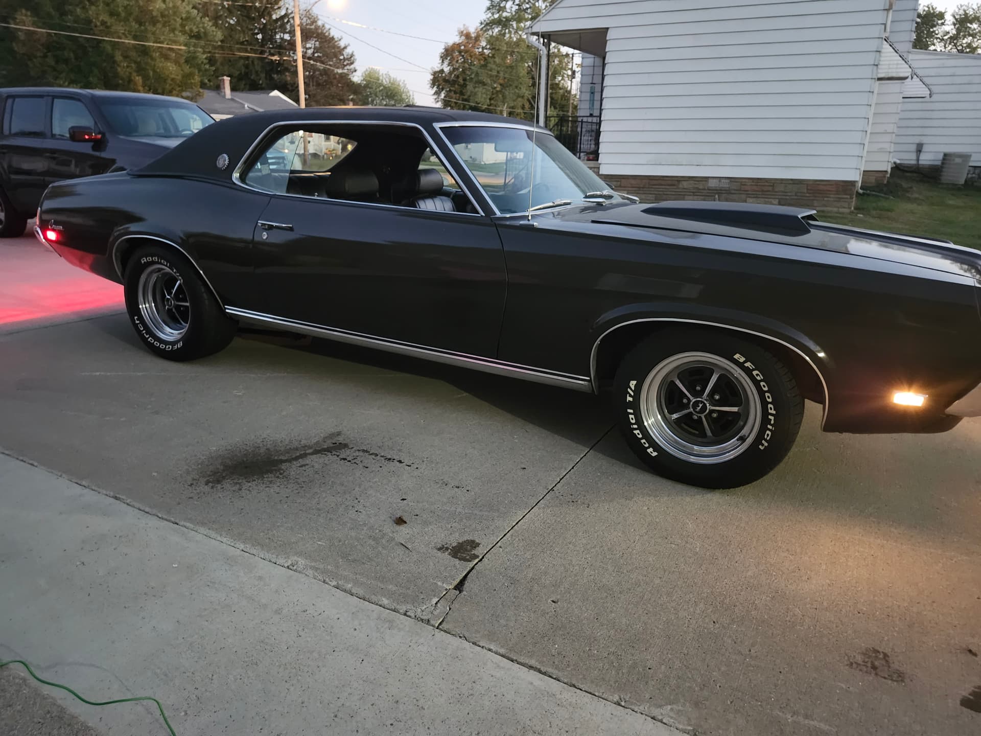 The stance of my 1969 Cougar XR7 428CJ. Needs shocks , but rides pretty nice. Cal Treks are the only thing not stock.
