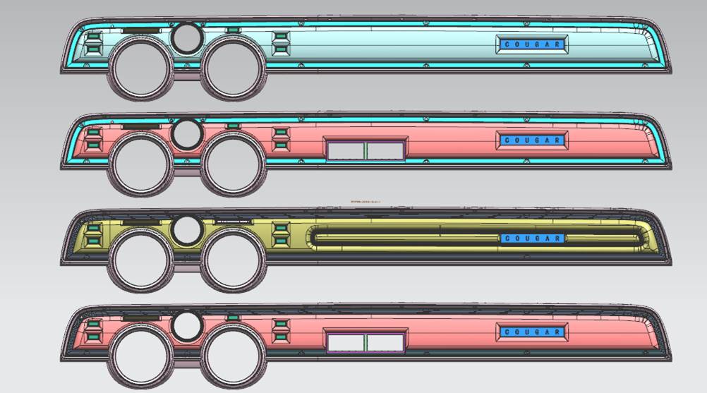 There are two versions of the aluminum trim. ‘67 used screws to mount and ‘68 used concealed dart clips. Plus each version has two permutations: AC and non AC. Do you guys think that we should offer the trim as a separate part for use with the original dash face pads? I question whether there are enough good ones left to make it worth while, however I could see people making custom face pads that might need them.