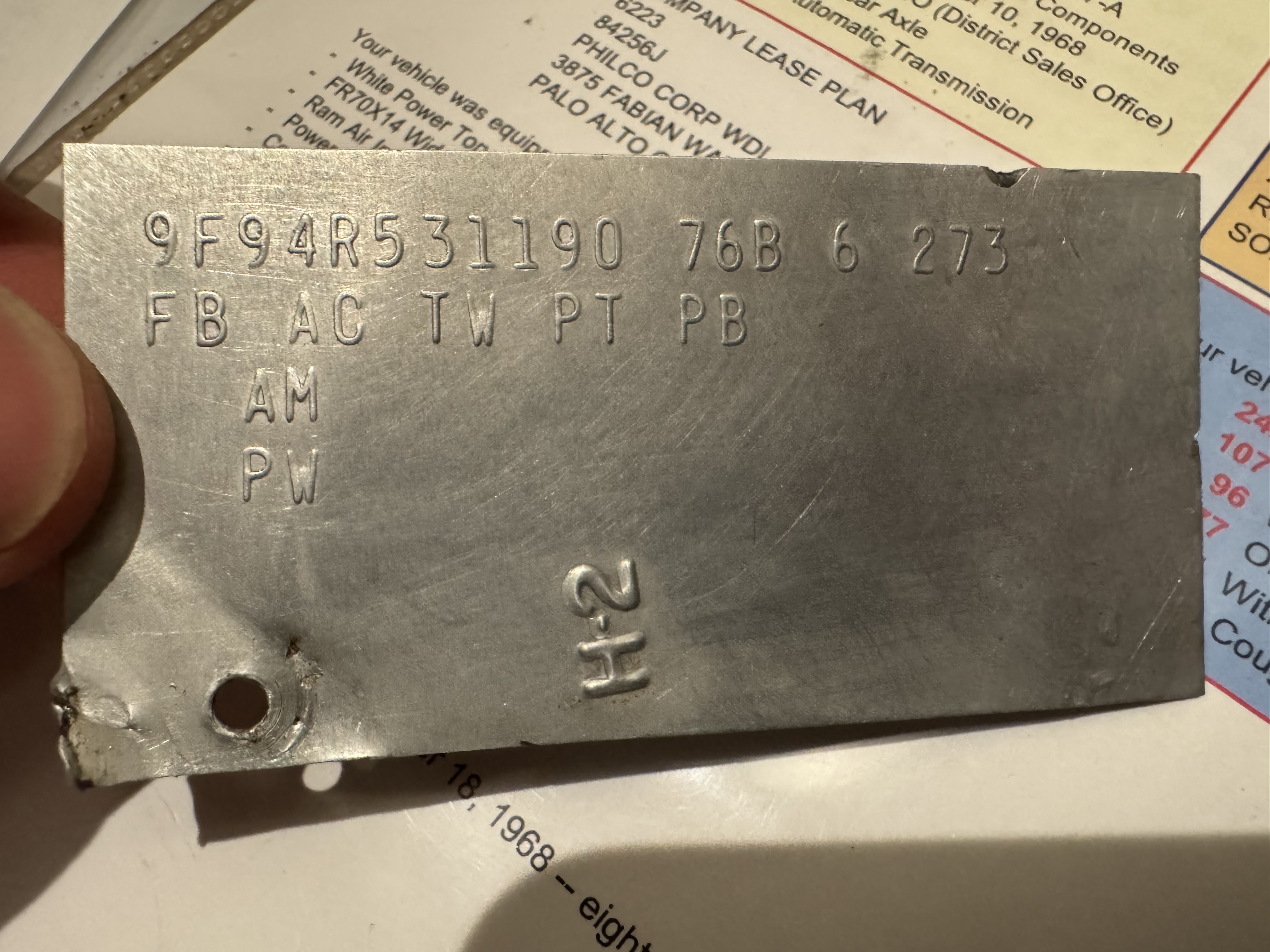 6Y is the interior color. PT = Power Top - it is a convertible. ST = Stereo Tape player - the car originally had an AM radio with Stereo Tape player - an 8 track.