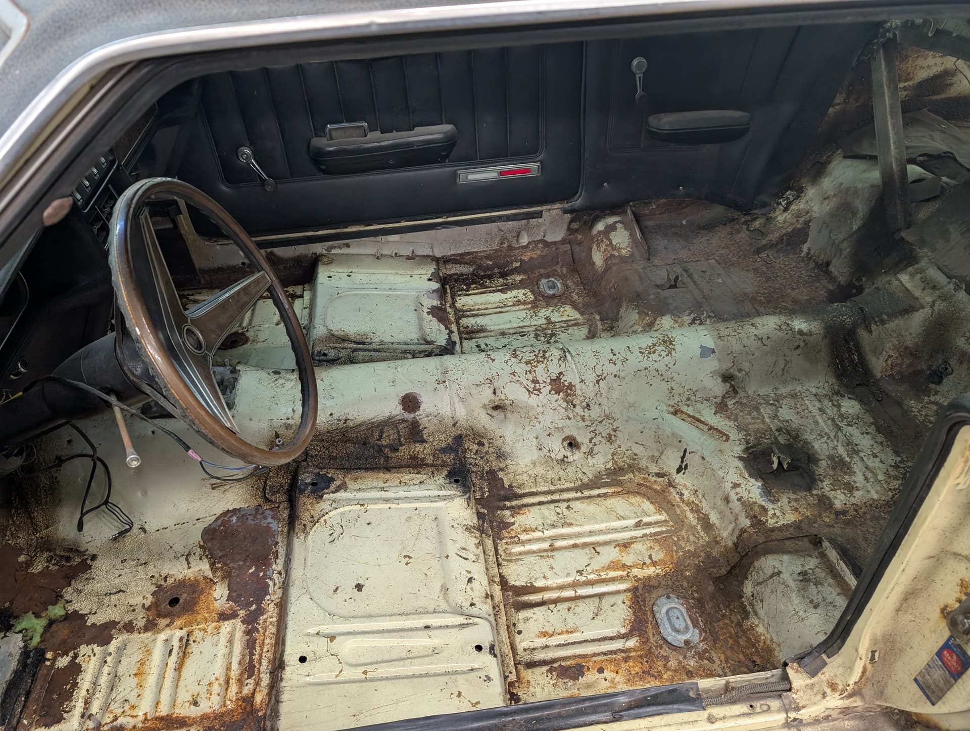 I have all of the necessary tools, welders, painting equipment, two post lift. I have fairly decent skills in everything except painting which I have an experienced uncle to lean on for that. My worst fear is having to completely strip the car down to bare bones and turn into a 5-10 year project. I would just assume that everything is in the same condition roughly as the picture above. The entire engine bay was painted 30 years ago and still looks ok. The trunk is being completely redone.