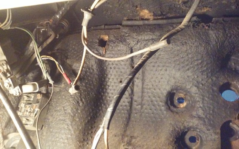 So in laying things out here tonight with the console and the console harness, it appears that with the ground wire length, where I can see it was screwed to the floor, and the length of the main lead, that it only makes sense that it does indeed run under the sound mat and then comes up where the front and back carpet overlay? It will work lengthwise, so that’s the way it will go.