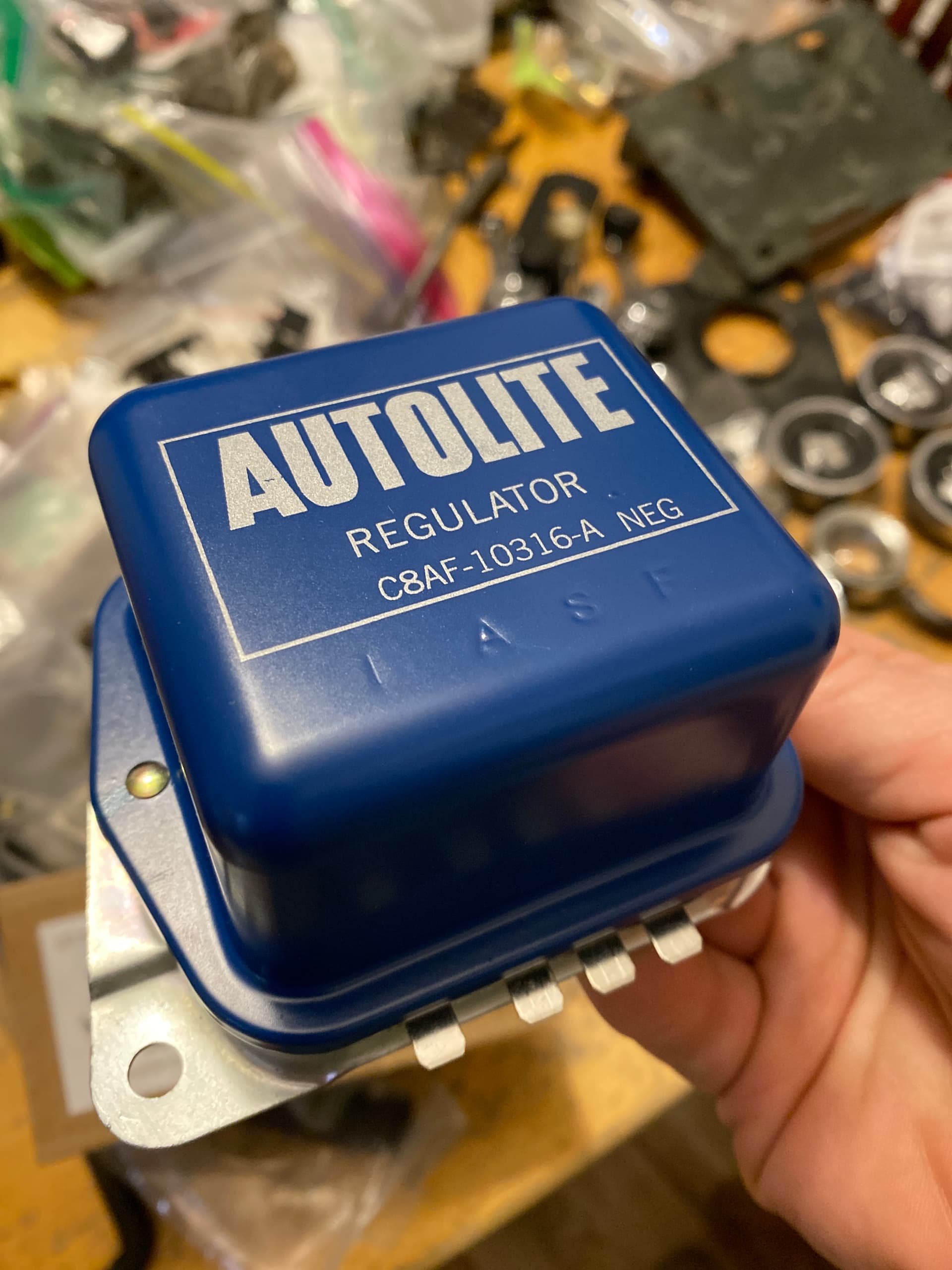 This is a Deadnutson voltage regulator, new in the box. Don’t remember how I ended up with an extra one. Marked C8AF-10316-A.