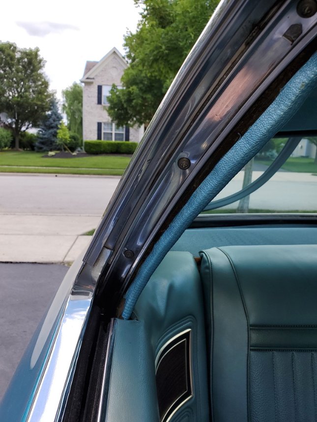 This time it is 70 Cougar Eliminator reference. The stainless trim that goes above the side windows and screws onto the body (that holds the weatherstripping on the top of the door glass). Does anyone have a pic of which screw goes in which hole? I have about 20 miscellaneous sheet metal screws with various heads and thread depths. I assumed they were all alike, perhaps not?