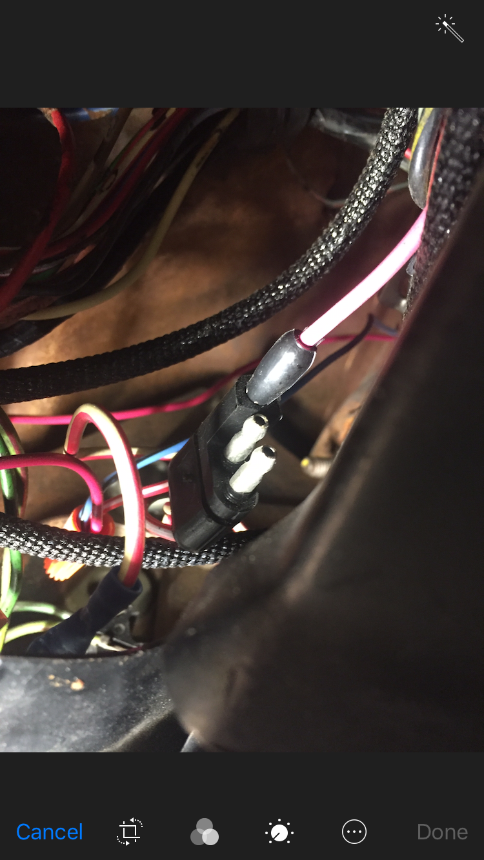 I did see a pink wire under the dash with a bullet plug I’ll look more closely this evening. Anyone have a color picture of how the tach wiring is supposed to look since mine is so butchered?