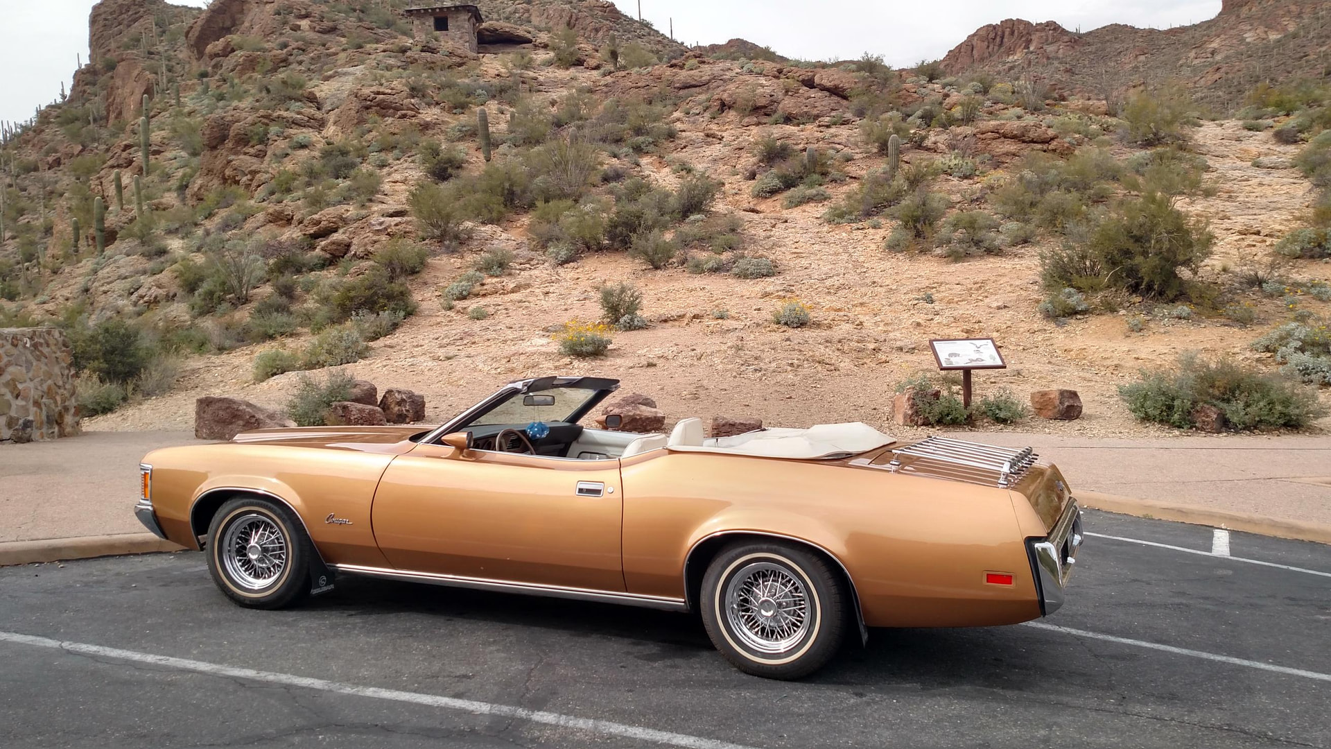 thank you..its an original color to Cougars….its referred to as ginger…came out of minnesota…to ct…and i shipped down here…i figure if i have to put the top up, i should NOT be driving it….i keep telling the wife she should be topless also…you can only imagine how well THAT lands….NOT